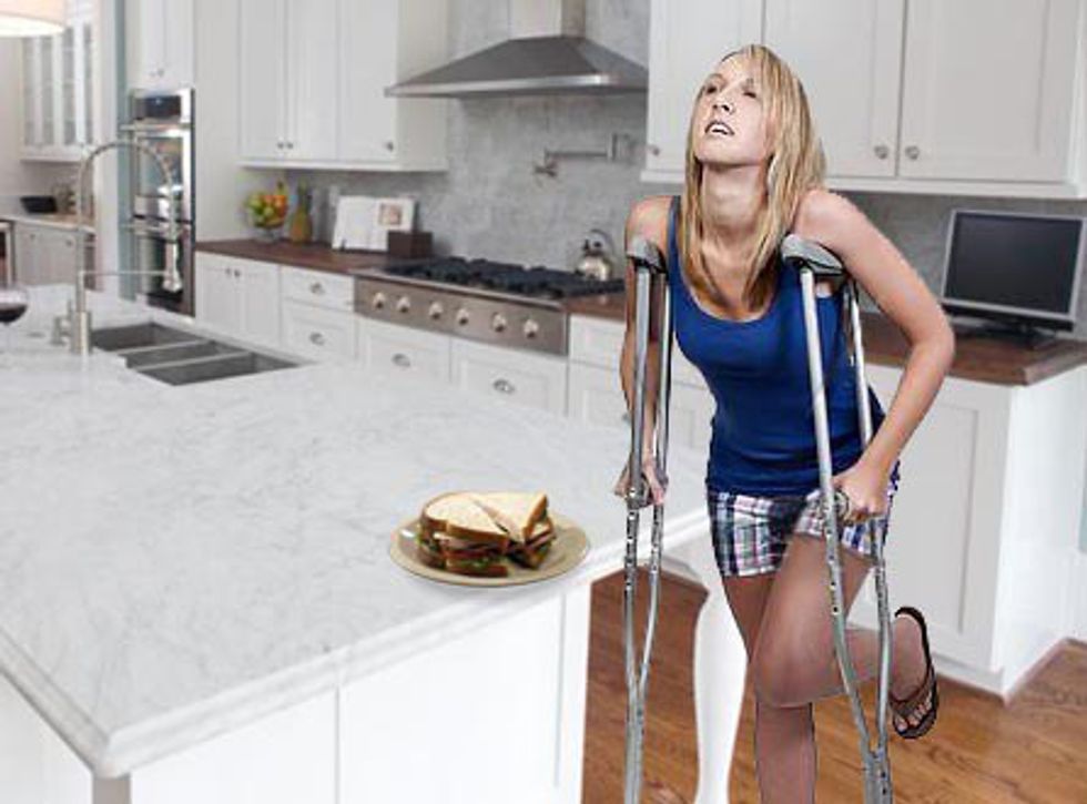 So you already lost your foot, and now you have to lose of BOTH your hands. How are you supposed to get food? You try to hold your phone and the handle, and you just end up dropping your phone every five seconds. Having to have someone carry around your stuff all the time sound nice at first, but anyone who has been on crutches knows it gets old really fast.
