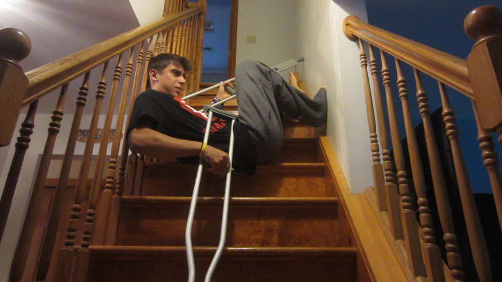 Whether you try to hop up them, balance on your knee, or just give up and go on your butt, I promise you this will be the most frustrating thing you do. If you think you walk slow, going up a flight of stairs can take you up to a half an hour, and will definitely make you work up a swat. Better just stay on the first floor. So when you hear those words, "You need crutches", you now know what fun you're in for. But don't worry, you'll only be on them for a short period of time!