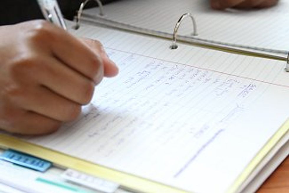 Writing with absolutely any type of pen or pencil; you are 110% guaranteed to have marks all over the left side of your hand not to mention whatever you were working on will be smudged. I would say stick to pencils, but there is truly no way out of this mess.