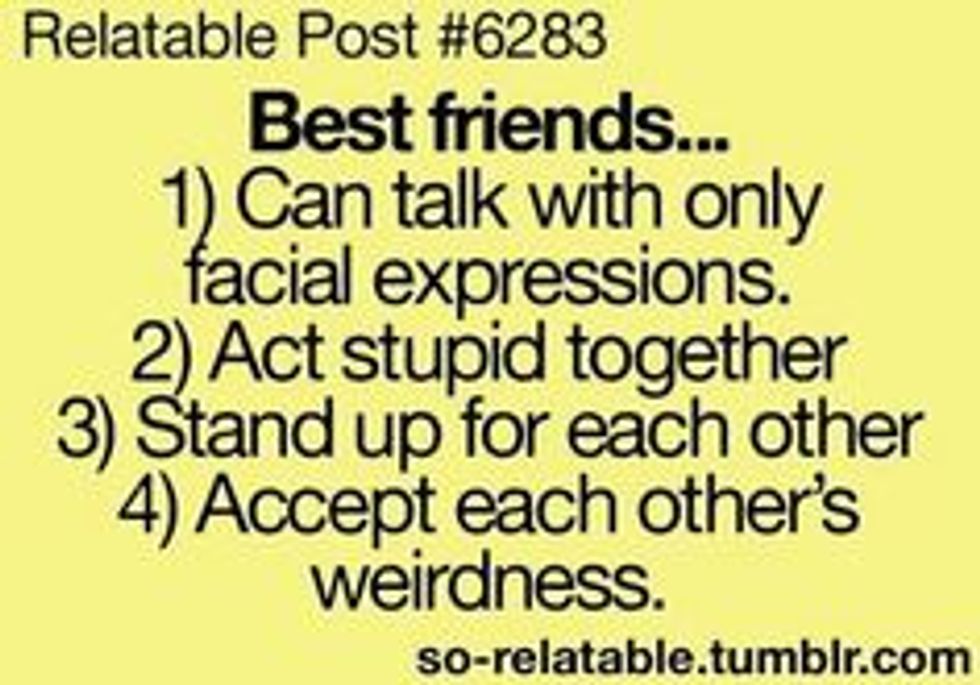 Everyone in the room gave us extremely weird looks when my best friend and I began running around the room pretending we were skies. Or when she pretended to stab me in the leg for no reason. Inside jokes are one of the amazing joys of friendship, and when you have a best friend you haven't seen in a very long time, the inside jokes tend to be even more enjoyable and even more funny than they were before.