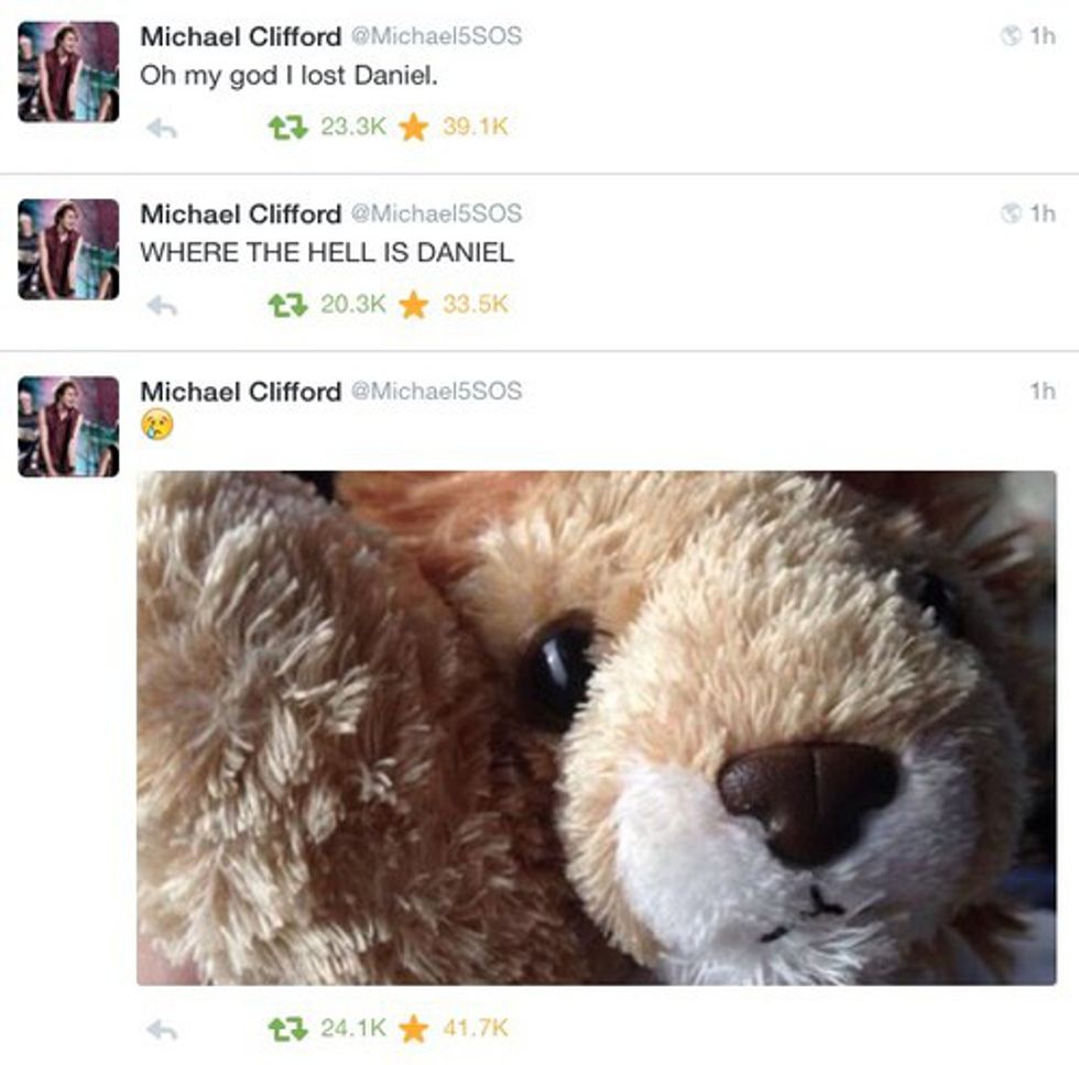 Michael had a stuffed lion, who's name is Daniel. Daniel went everywhere with Mikey and the band. To the point that he was kind of like the band mascot. Daniel was family to Mikey and we loved him as such! The day that Mikey lost Daniel was a sad day as we had lost a friend. Mikey, even without Daniel, is still adventurous so worry not!