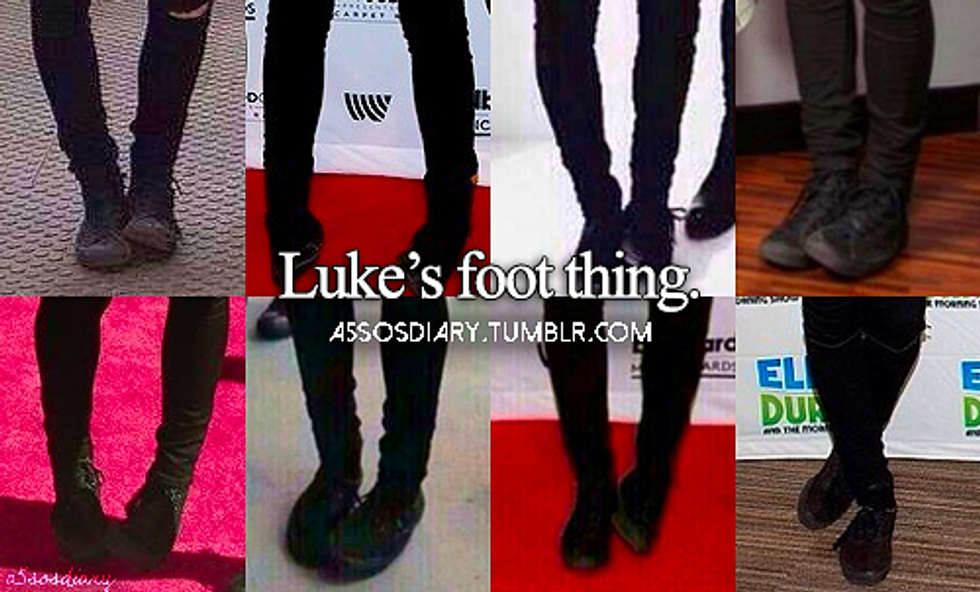 Most people stand with their feet side by side. Luke Hemmings on the other hand stands completely different. When Luke is taking photos he either has one foot behind him or he rests one foot on top of the other. When he's on stage, again a lot of artists will stand with their feet parallel to each other or slightly angled out. Luke stands with his toes pointed together and I think it's super adorable.