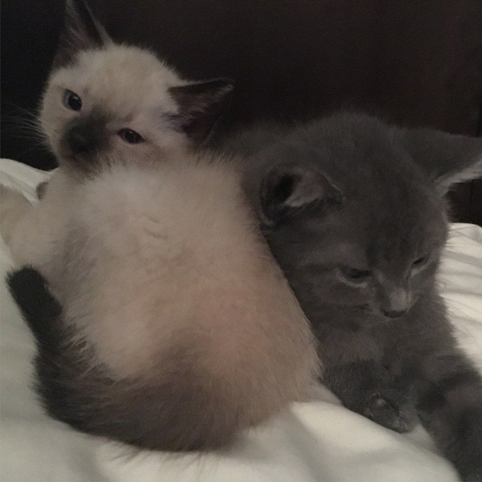 These are me and my boyfriend's rescued kittens, Marilyn and Rivy. They're completely adorable, wonderfully tempered, and don't interrupt when you're talking! They are, in all respects, better company than comb-over Donald.