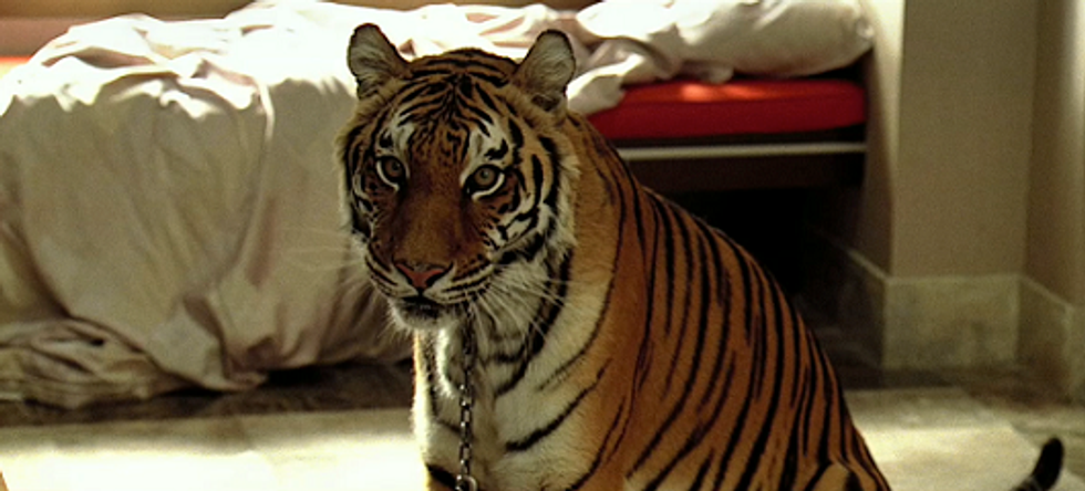 Mike Tyson's Tiger from the movie, The Hangover, would be incredibly scary to wake up hungover to...which is much less scary than waking up hungover to Donald Trump.