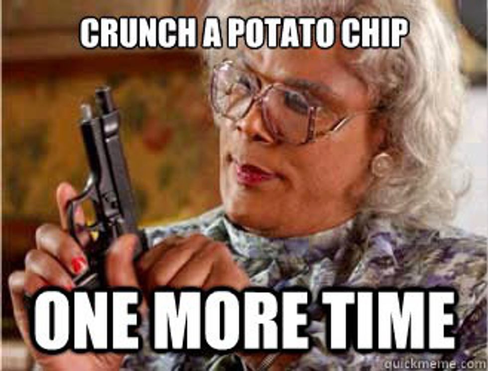 After ten minutes of frantic searching, you finally land yourself a seat. You whip out your laptop, spread out your notes, and begin brainstorming for the ten page paper you've been putting off. As you gather your thoughts, you hear the distinct crinkling noise a chip bag makes when pulled apart.