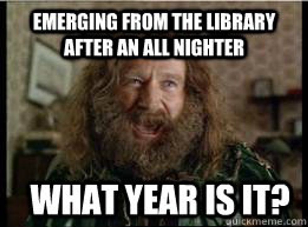 These individuals are easy to spot. Common characteristics include: bags under the eyes, sweatpants, empty cans of energy drinks sprawled out around them, and coffee-- lots of coffee.