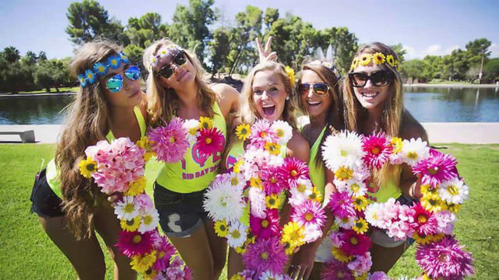 Not only do you all look super adorable in your matching themed tops and outfits, but you get them for free! Sorority girls have a serious appreciation for matching with their sisters whenever possible.