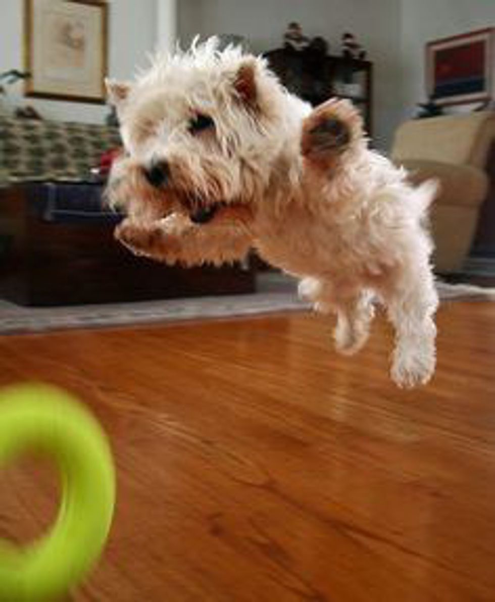 A lot of Westies are bred to compete in dog shows. Sometimes when they run, they get serious airtime which is hilarious. They also can change directions super fast when they're running around in the backyard or when you're chasing them.
