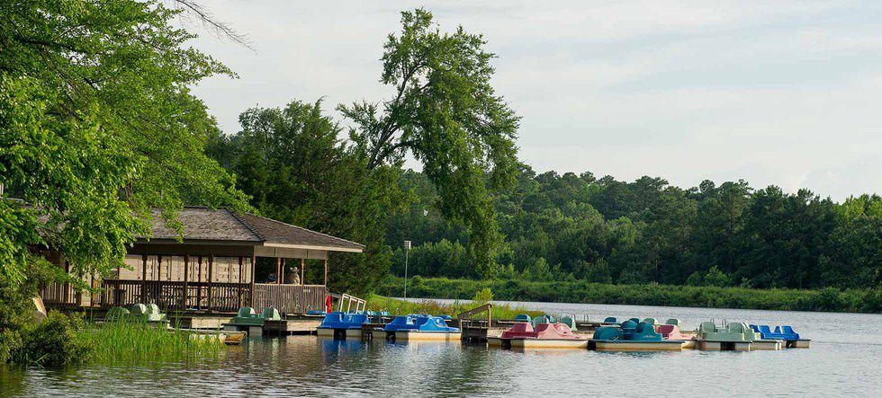 Brazos Bend State Park is close to Houston, so it's a close-to-home vacation. Since there is no swimming available to beat the Texas heat, this park is best to visit during the spring and fall when it' cooler. There may not be swimming to keep you busy during the day, but there is a planetarium that is open to the public. The park also offers plenty of hiking and biking trails that circle the waterfront. Be warned though, the park has a lot of alligators which can often block paths on trails.Be smart, turn around, try again some other time. Aside from the occasional gator spotting, the park is a perfect way to explore nature during school breaks.