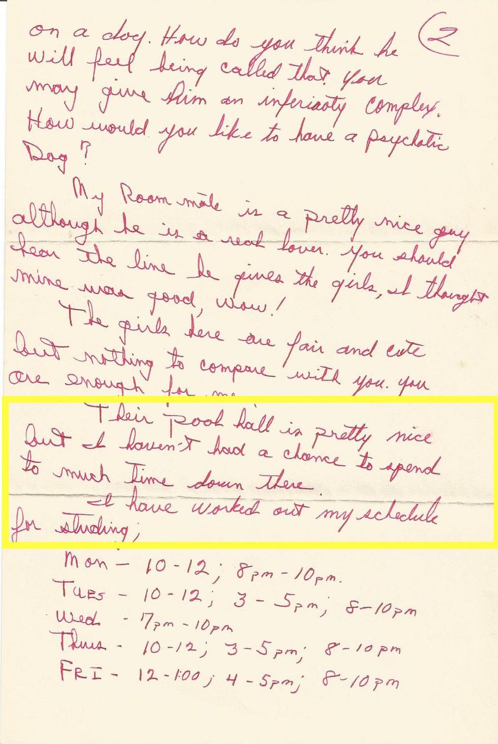 It is mentioned several times in various letters that the pool hall on campus was always packed with people, often smoking indoors.