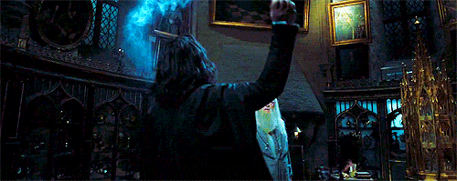 “From the tip of his wand burst the silver doe: She landed on the office floor, bounded once across the office, and soared out of the window. Dumbledore watched her fly away, and as her silvery glow faded he turned back to Snape, and his eyes were full of tears.