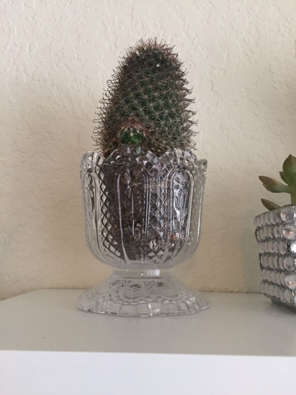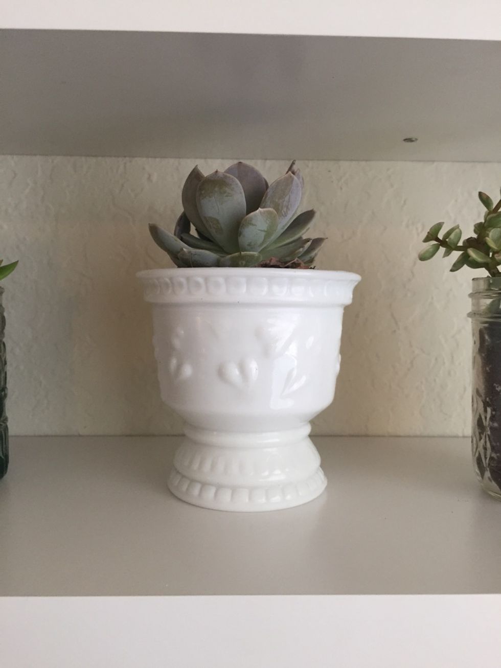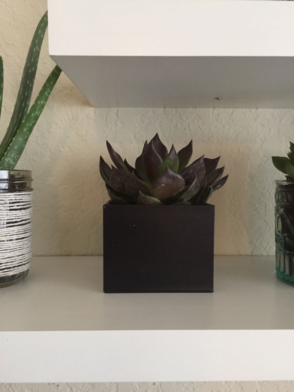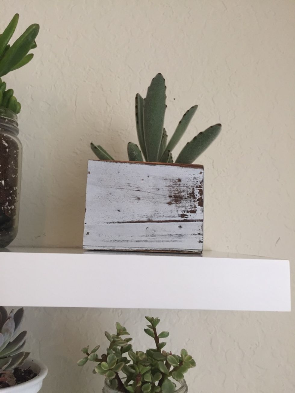 Take trinket holders and old post-it note receptacles and give them a chance for beauty as a succulent home. If you have no such luck in your own home, trendy boxes, http://www.michaels.com/square-whitewashed-wood-box-by-artminds/10409357.htmllike this one, can be purchased at most craft stores.