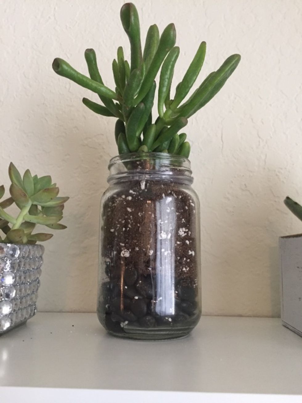 Everyone has to eat. Turning old food containers is an easy way to create on a budget. If you don't have enough succulent soil, grab some rocks!