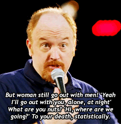 Even Louis CK realizes how ridiculous it is that women are in so much danger when they do something normal, like go on a date with a man. Yes, we need to be careful, but maybe it would be even safer if men didn't statistically attack us so much...food for thought.