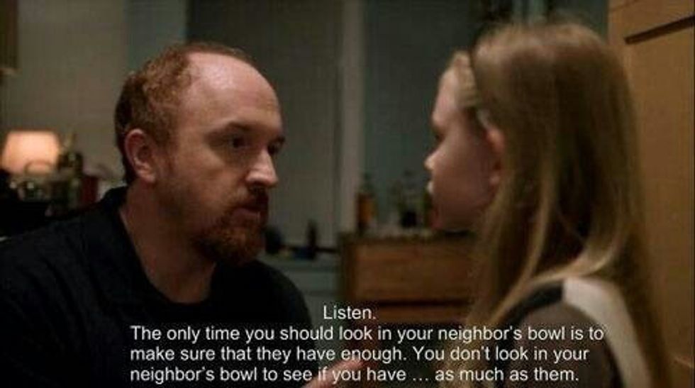 Whether you're a huge fan of his standup or you know him from his little roles in things like "Parks and Recreation," you know that Louis CK is two things: hilarious, and unafraid to speak his mind. He is known for his blunt humor and sarcastic attitude towards a life that he often paints as less than perfect. In other words, he's just a normal, relatable guy who really knows how to make people laugh. In the midst of all his inappropriate story-telling and side-splitting musings, though, I realized how much truth he really was speaking. He tackles touchy topics that others are afraid to in an awesome way, and he does not give a damn about hurting anyone's feelings when he does. So, from the man himself, here are some great words of wisdom that we should all keep in mind.
