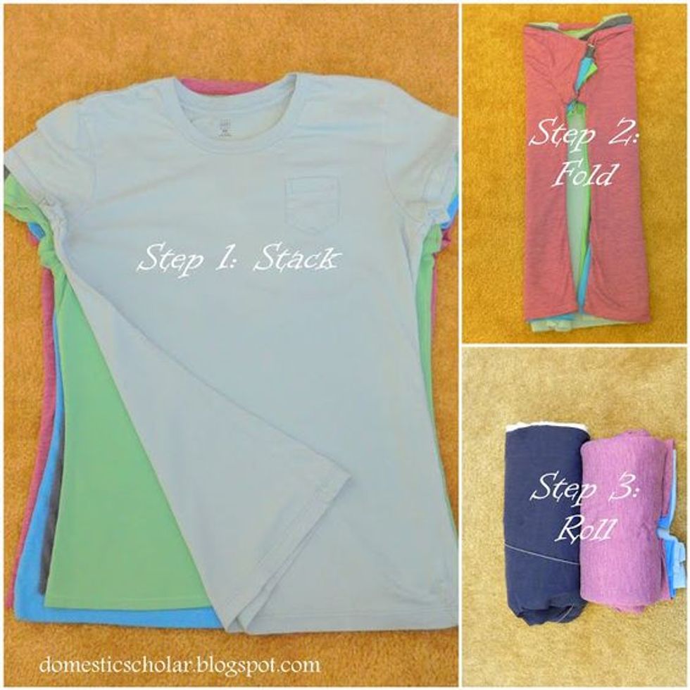 2. Roll your shirts to save space and prevent wrinkles.