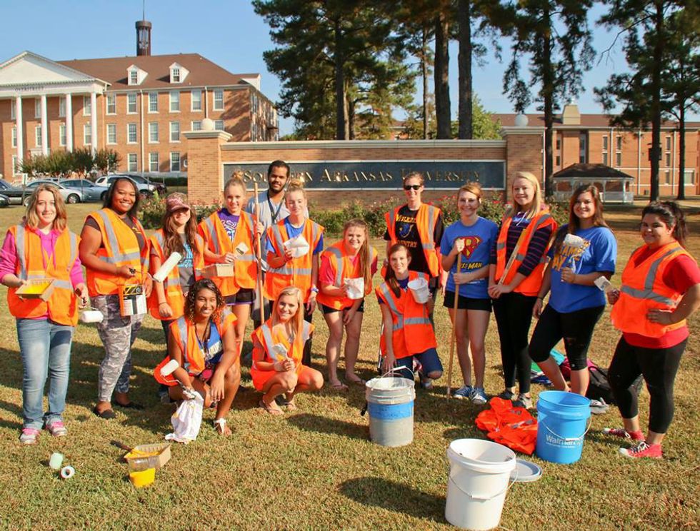 According to SAU's album of "Community Involvement" on their Facebook page, "More than 100 freshmen Mulerider students worked throughout Homecoming week volunteering to help spruce up campus for our weekend visitors. Some Freshmen Seminar classes painted curbs and other picked up litter. Community involvement is at the heart of SAU’s Complete College Experience!" This and the annual "Making Magnolia Blossom that Aaron Street" started at the university where all of SAU's student faculty and staff can go online and volunteer to help make Magnolia "blossom." Community service speaks for itself on how important SAU's community involvement is. I think this makes us unique and actually grow and sprout out more into the community.