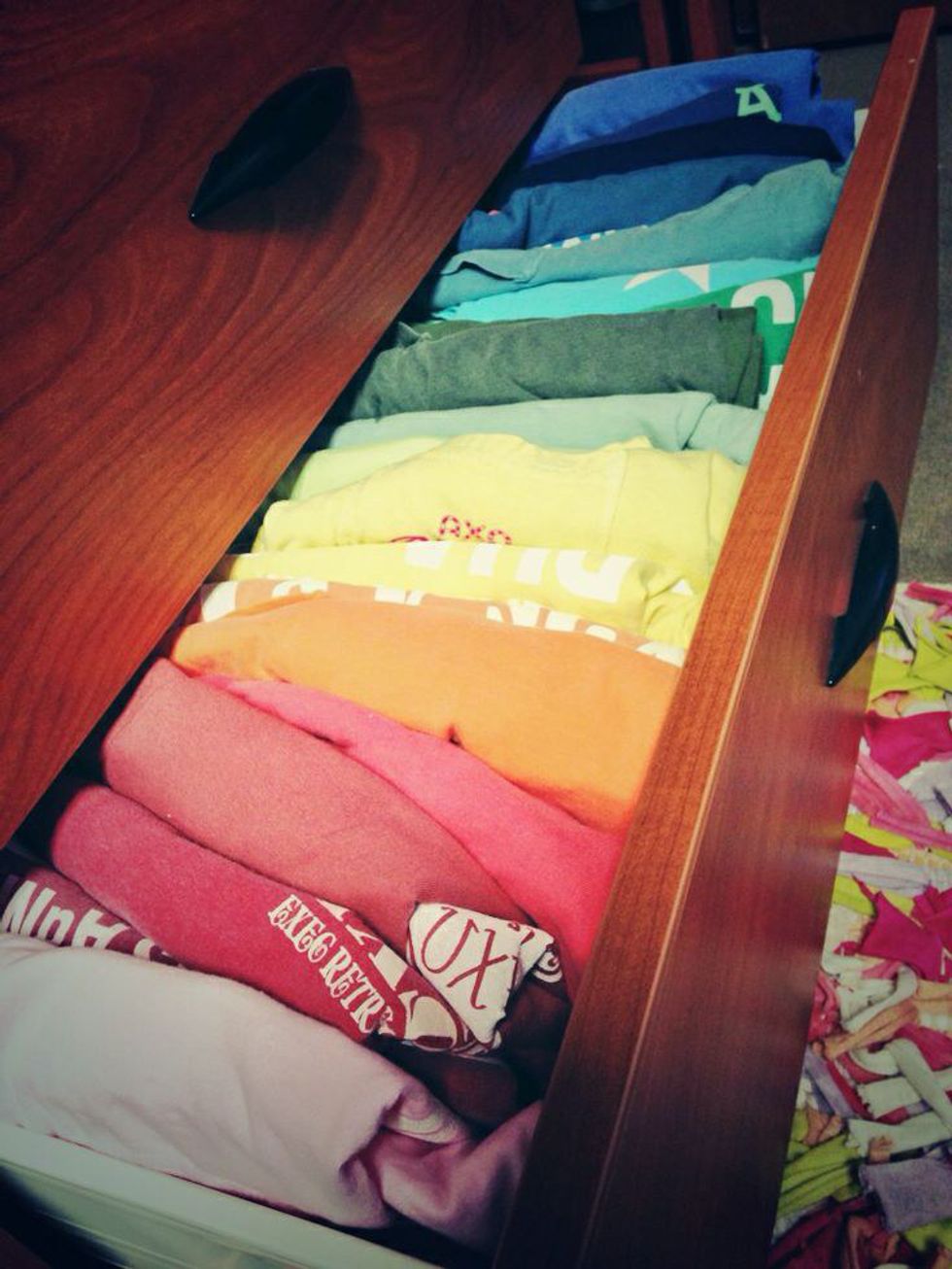 Upon joining a sorority, you'll be receiving SO many t-shirts to a point where you'll have an entire drawer dedicated to them. They're endless; t-shirts for every event possible. Bid day shirts, formal shirts, just-because shirts; you'll never need to buy clothes for quite a while.
