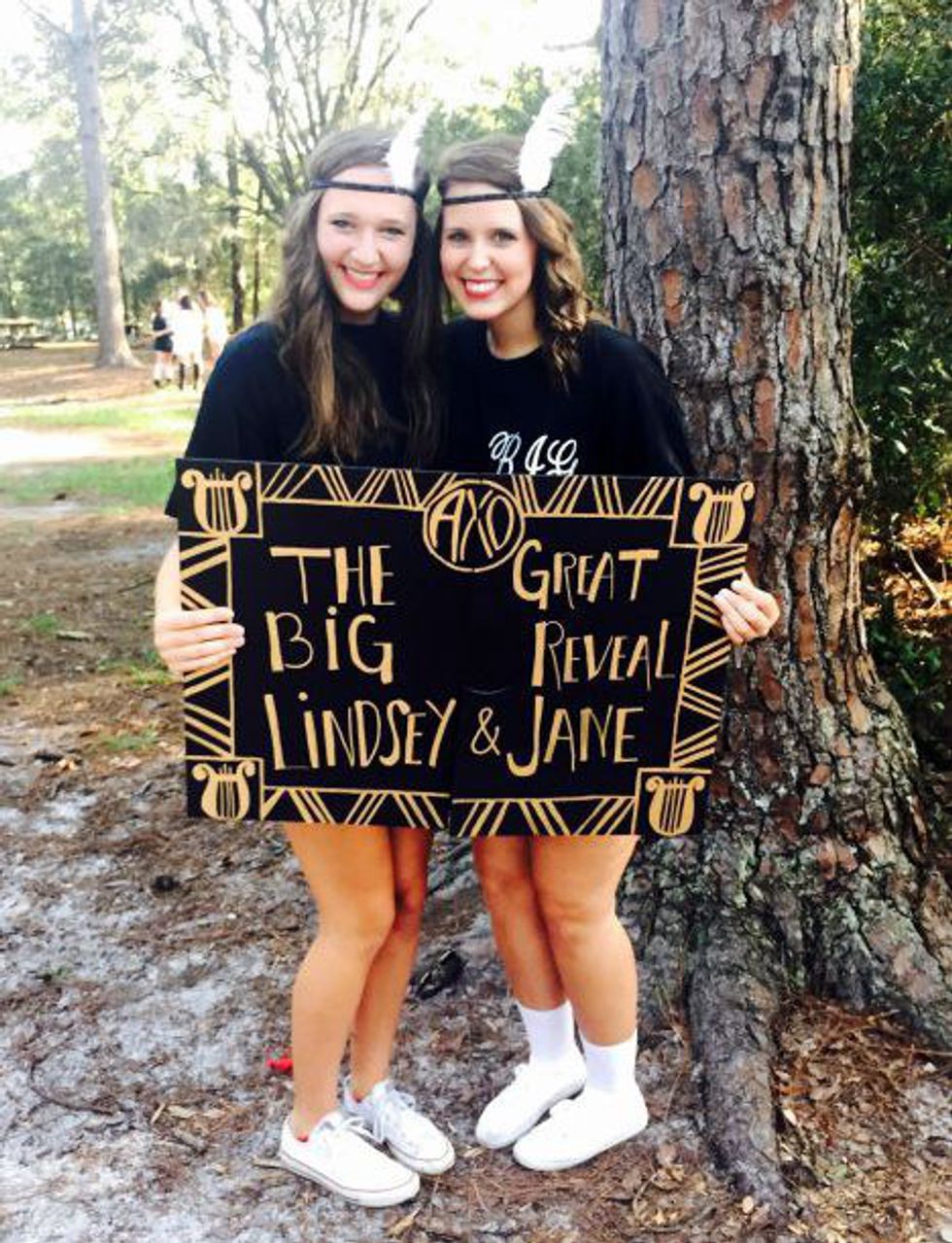 When you first join your sorority, you will get to know some of the older sisters as they also get to know you. That's when you'll get your "Big". You will receive clues and little gifts from your big ranging from a few days to a week (depending on the sorority) that eventually leads up to Big/Little reveal where you can finally reunite with your Big! Having a Big, and a whole entire family line (Grand-big, twin, etc.), allows you to grow even closer to your sisters! Your Big is your role model and best friend, and pretty soon you'll also be able to have a little of your own to add to your family line.