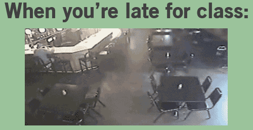 Then what does the Late Kid do? Walks in front of the class to turn in the assignment on the Professor’s desk. Nice.
