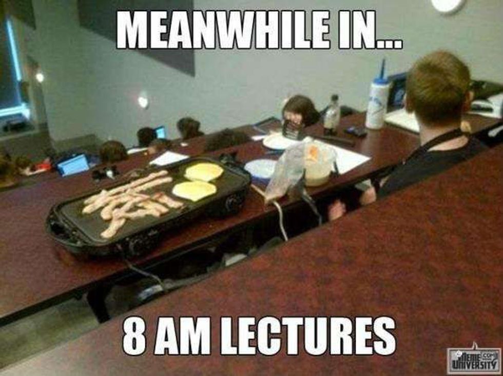 The professor has now been talking for a solid 7 minutes. It doesn’t really matter anyways because you can’t hear anything thanks to The Muncher and The Whisperer.