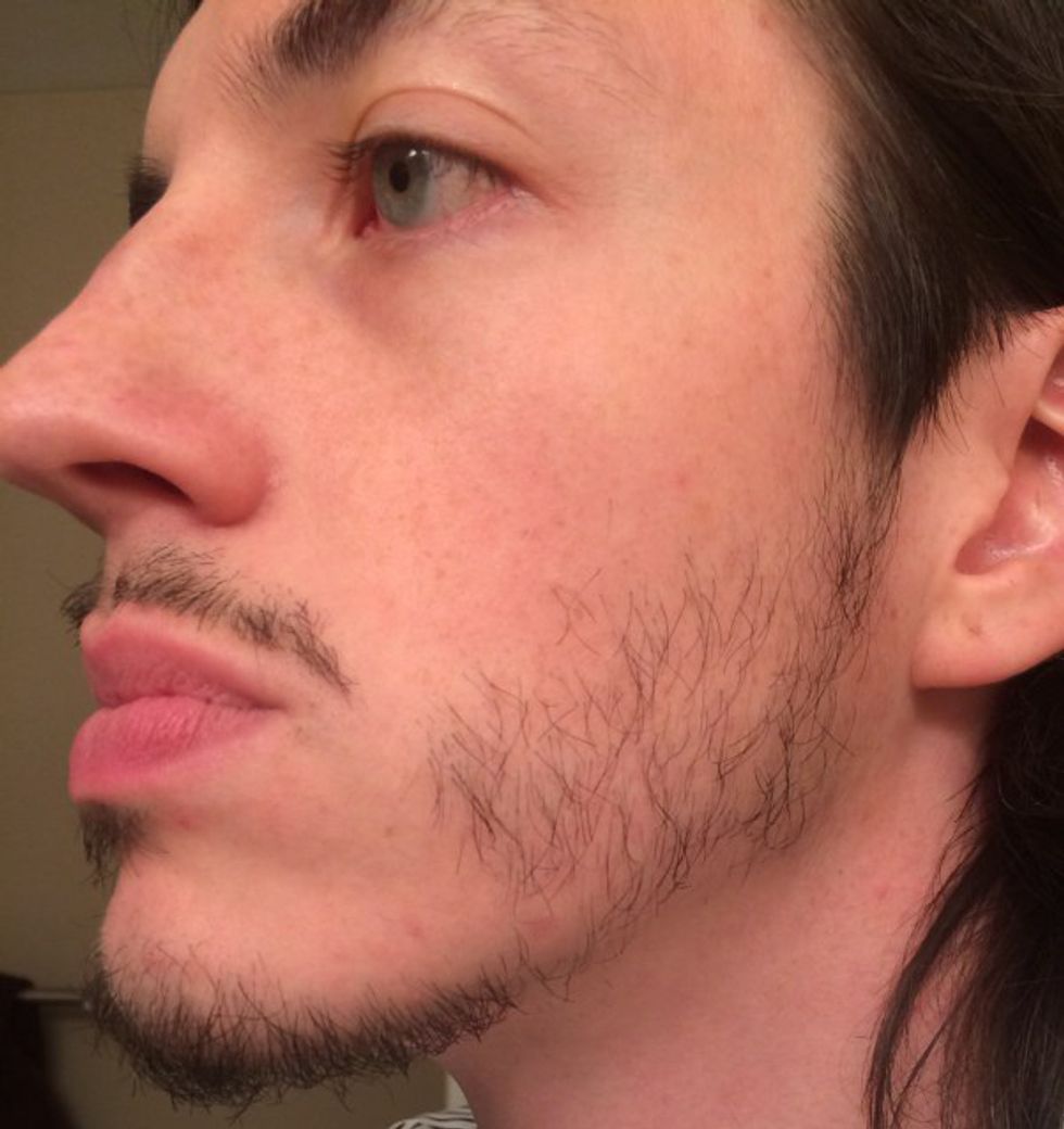 This guy really gave it his all, but somehow he got caught between the scruff and the beard and is left in some awkward place in the middle. I give him props for trying though.