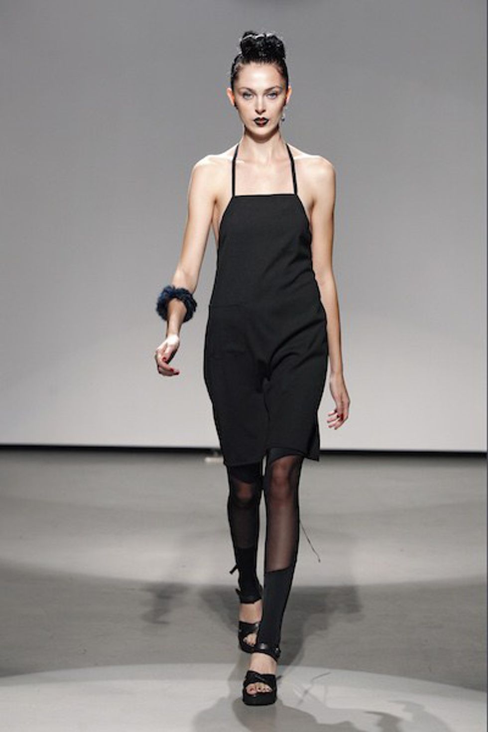 Yup! Scrunchies, but not the same old cotton scrunchies you remember. These scrunchies are re-vamped and more posh than ever. Katie Gallagher worked fur scrunchies into most of her collection this past week. The models didn't just work this item as a hair accessory but as an arm garnish as well. The colors varied between neutral shades of black, vanilla, and optic white.