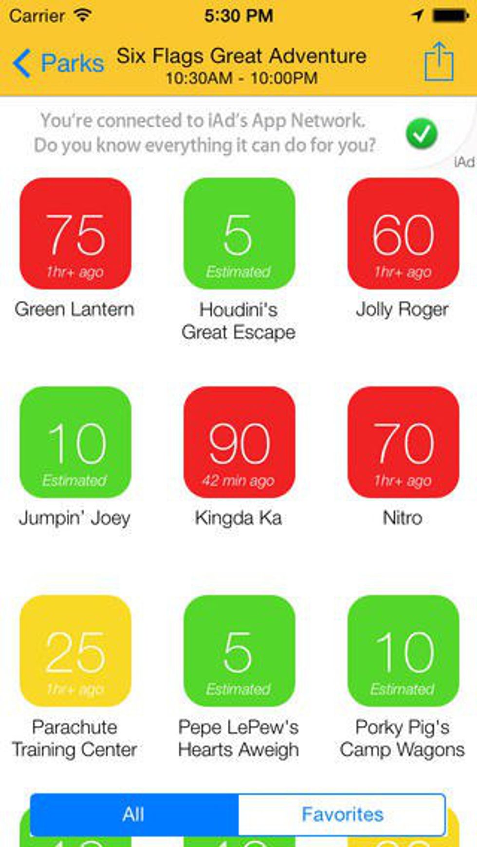 In the age of smartphones, we now have a way of telling the wait time for rides without having to walk *gasp* all the way across the park. The Six Flags app, along with outside apps, have updated wait times and/or closings every few minutes. This will help you find out times for the rides you want to ride and decide if it's really worth it at that moment.