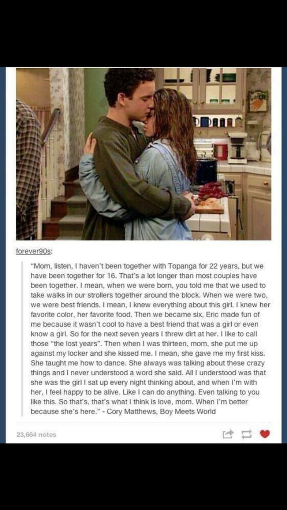If you ask me, though, the only real "perfect relationship" that I have ever seen is Cory and Topanga from "Boy Meets World," and they even had their ups and downs!