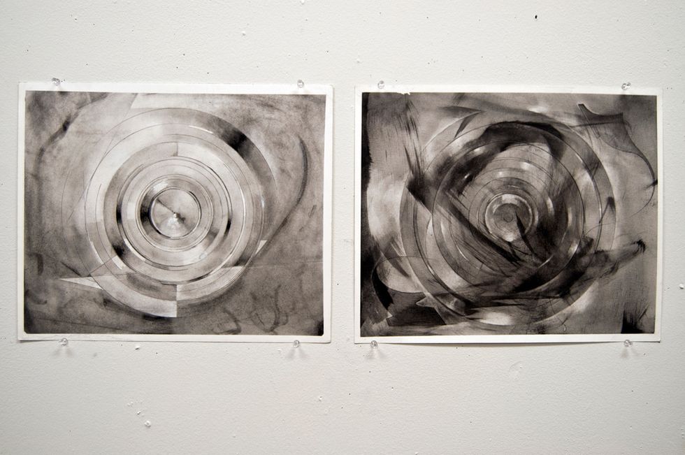 Moore performs his graphite cast records in experimental sound pieces. The result is a series of tracks that hang in the air as inverted ghost-like sounds, Moore likens to the voices of beloved family members who have since past.