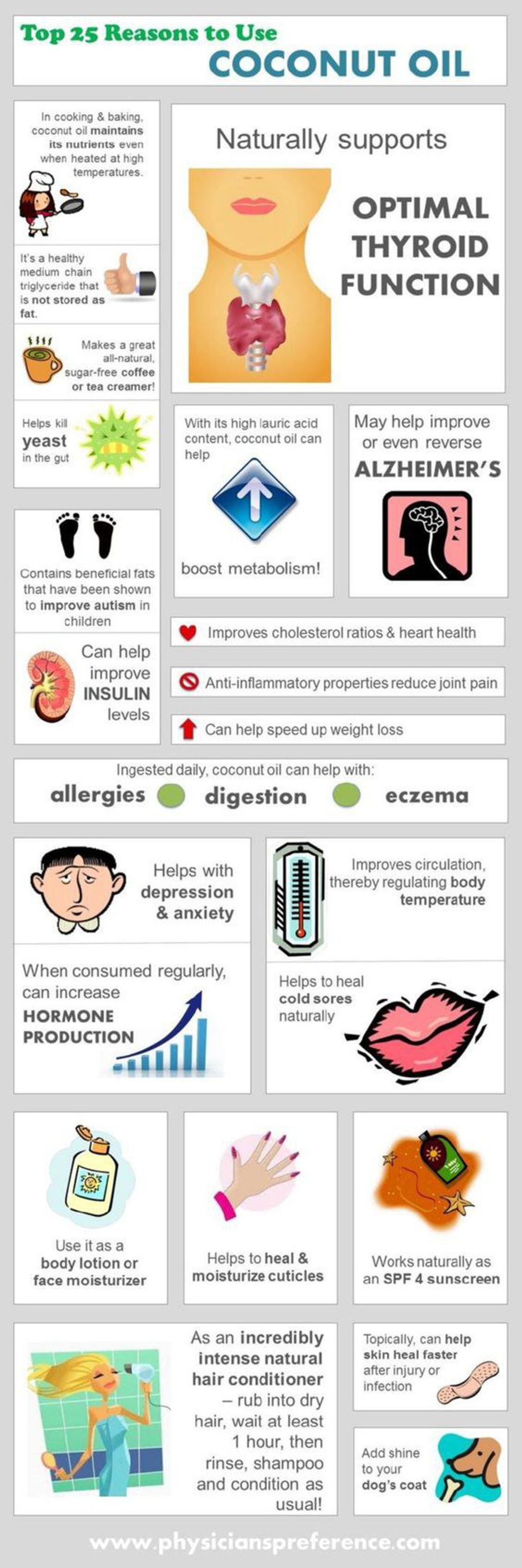 Coconut oil is strongly recommended for a number of other benefits that are explained below: