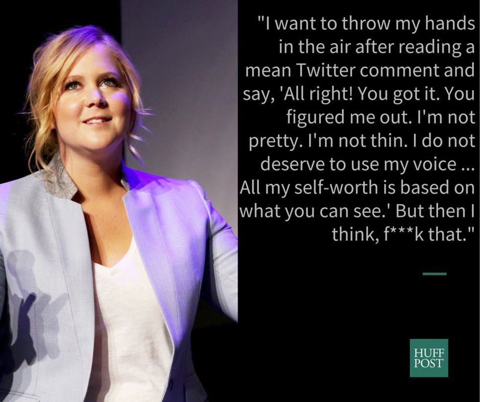 If there is any woman in the media that's going to stand up for herself no matter what it may take - it's going to be Amy Schumer. But even she, just like everyone else in the world, might be uncertain about herself at times. She says, "I still stand in front of that mirror sometimes with doubts. But even on my worst day when I'm feeling awful, I smile and say, 'You're doing the best you can. Good job, bitch!'"