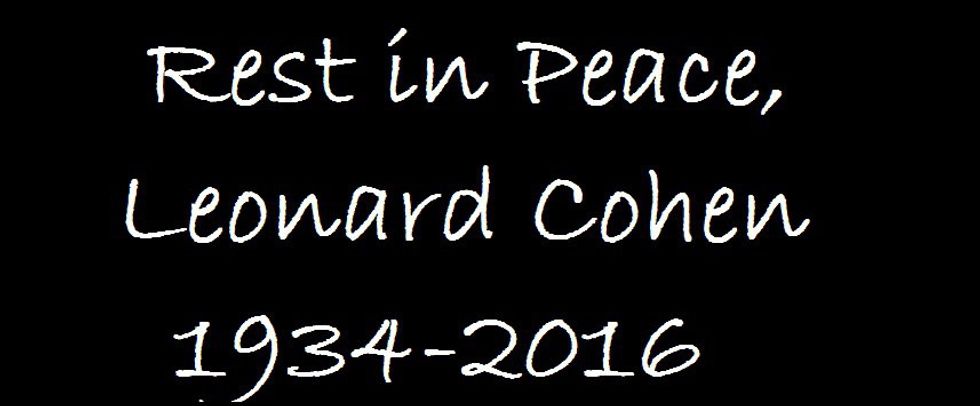 So, Mr. Cohen, thank you. Thank you for uniting us all once again, even in the most unfortunate circumstance of your death. My social media flooded with posts about you, diverting from the divisive political posts from an emotional election. Thank you for your music that continues to touch lives and will live on for all eternity. Thank you for the memories that I have of you and that others have shared with friends and followers through social media. The world is a better place because you graced it with your music.