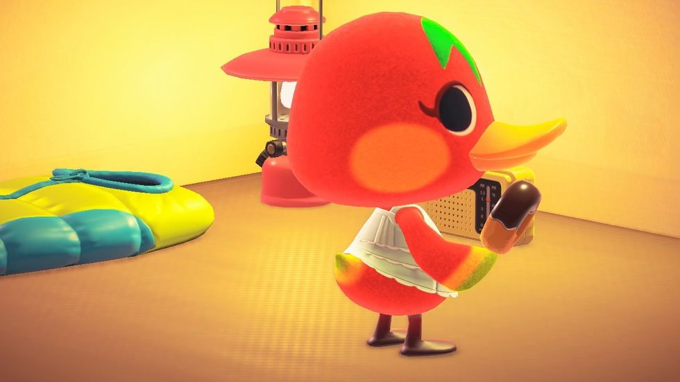 Our Number 6 pick is Ketchup, yes you read that right. Ketchup. She is a tiny red duck with what seems to be a leaf growing out of her head. She is very energetic and will constantly ask the player if they want to "play" with her, mostly simple tasks like hide-and-seek or tag. She is extremely adorable and will use that to her advantage, making her eyes big when asking the player for something or purposely doing cute things around the island, like playing in the dirt. She can mostly be found wearing a white plastic bag looking dress, which she rarely changes out of, and when walking around makes tiny crinkling noises.