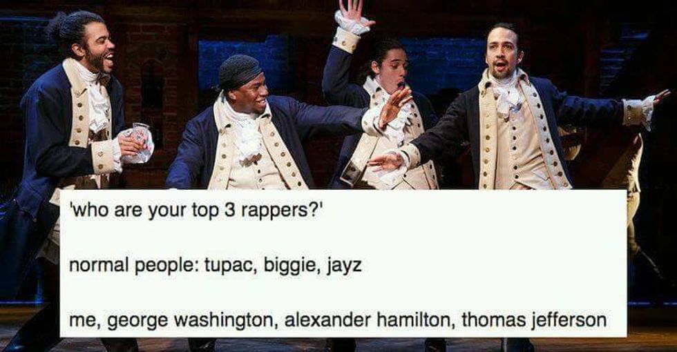 Someone gets an ear worm that results in singing and reenacting the entirety of Hamilton.