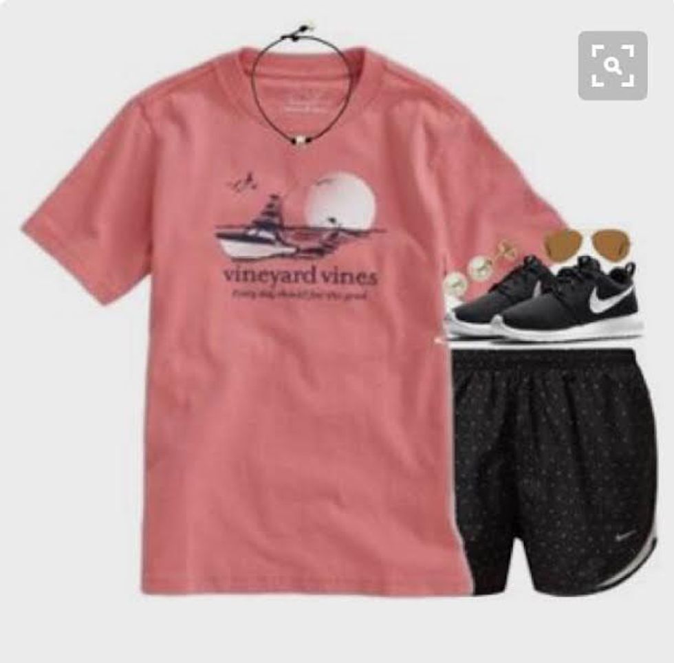 This is my personal favorite, and my usual go-to. A preppy t-shirt, Nike shorts, and tennis shoes is as comfortable and practical as it gets. While this outfit may seem a little too dressed down, it is completely acceptable in the college community and almost as comfy as pajamas.