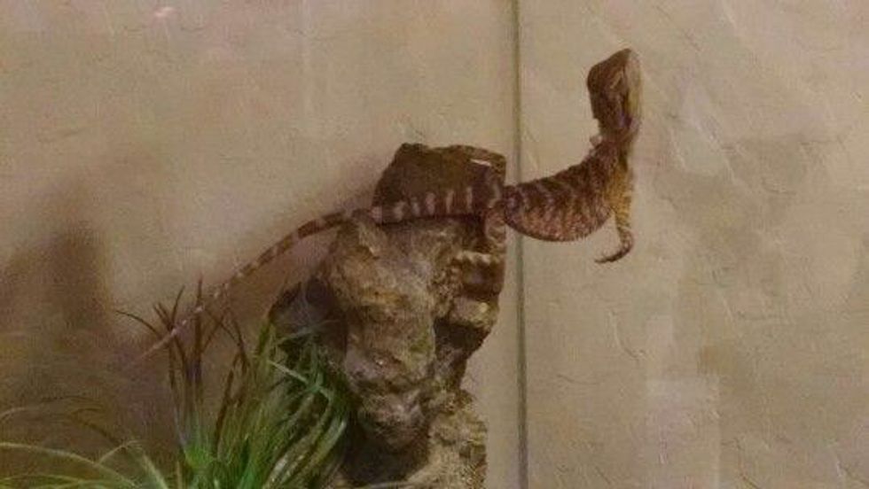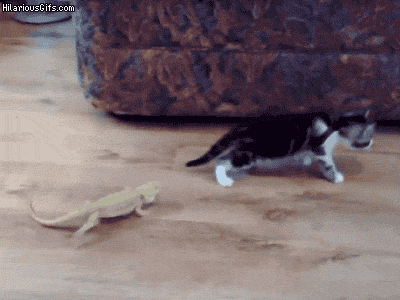 This lizard may have taken on a kitten, but you haven't lived until you've seen a German Shepherd run from something approximately 1/20 its size.
