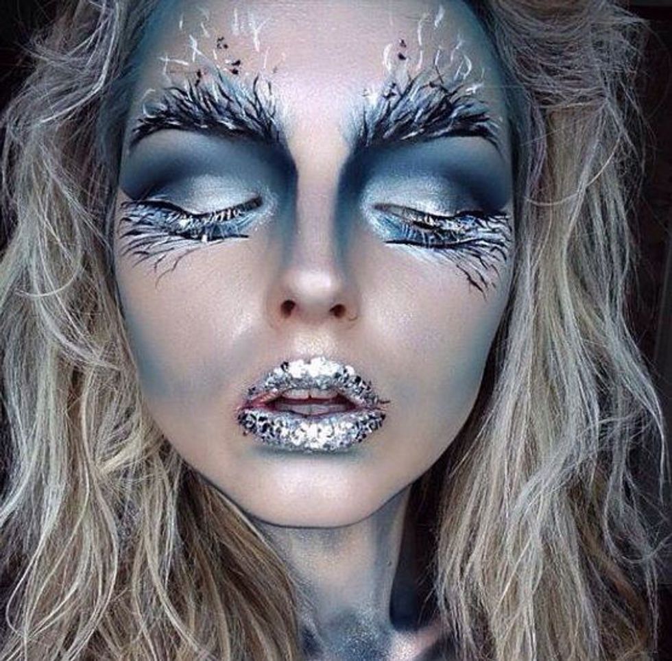 OK yes, this looks complicated, but just use a lot of highlighter and blue tones for a frosty look.(Bonus points for glitter!!)