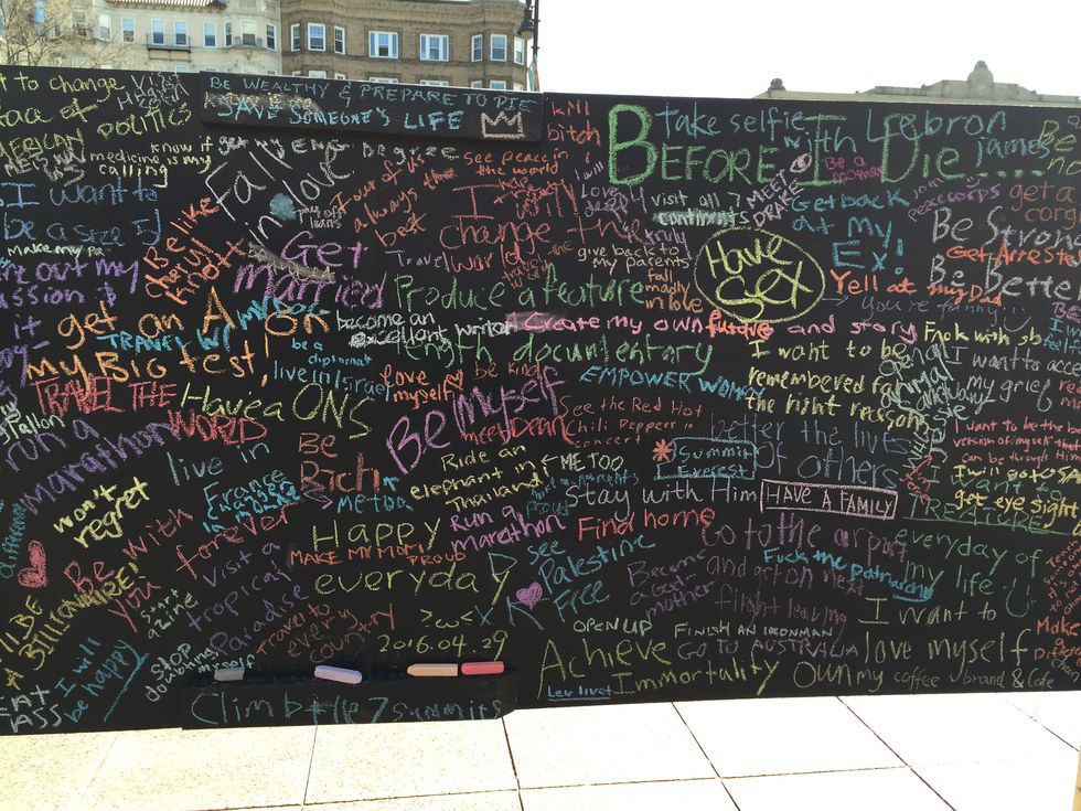 There was something different about this wall, though: it would not be here forever. It was physical: you lifted the chalk, you drew on the board and then you walked away. It would be erased by the end of the day. You could take a photo of it, but it wouldn't be the same -- just like everything you see online. You can't grab those dreams; you can only share them and then keep scrolling, likely to forget about them.