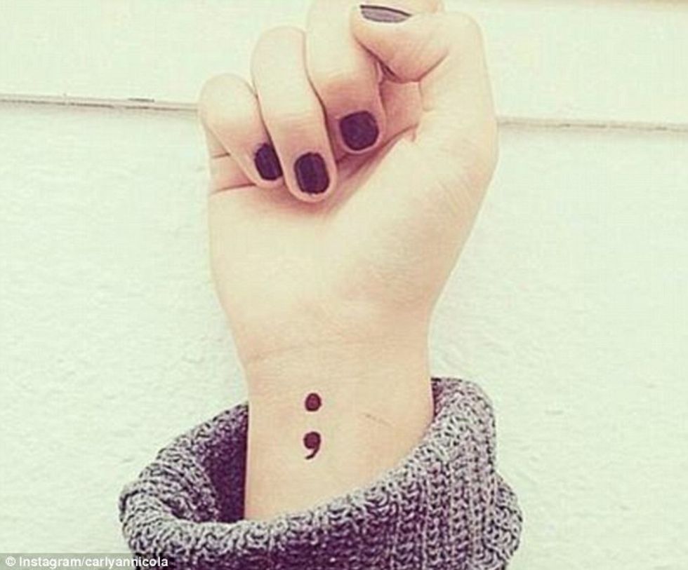 A tattoo is sometimes seen as a regret for later on in life, but those who have the latest tattoo craze sweeping the nation, won't be having regrets anytime soon. The tattoo is normally located on the wrist and depicts a semicolon pictured below:
