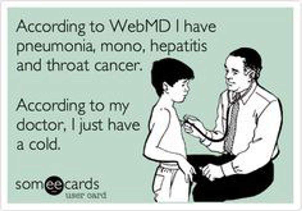 3. This self diagnosis will often come as a result of WebMD. If all your symptoms match then you'll probably end up thinking you have something much worse than it actually is.