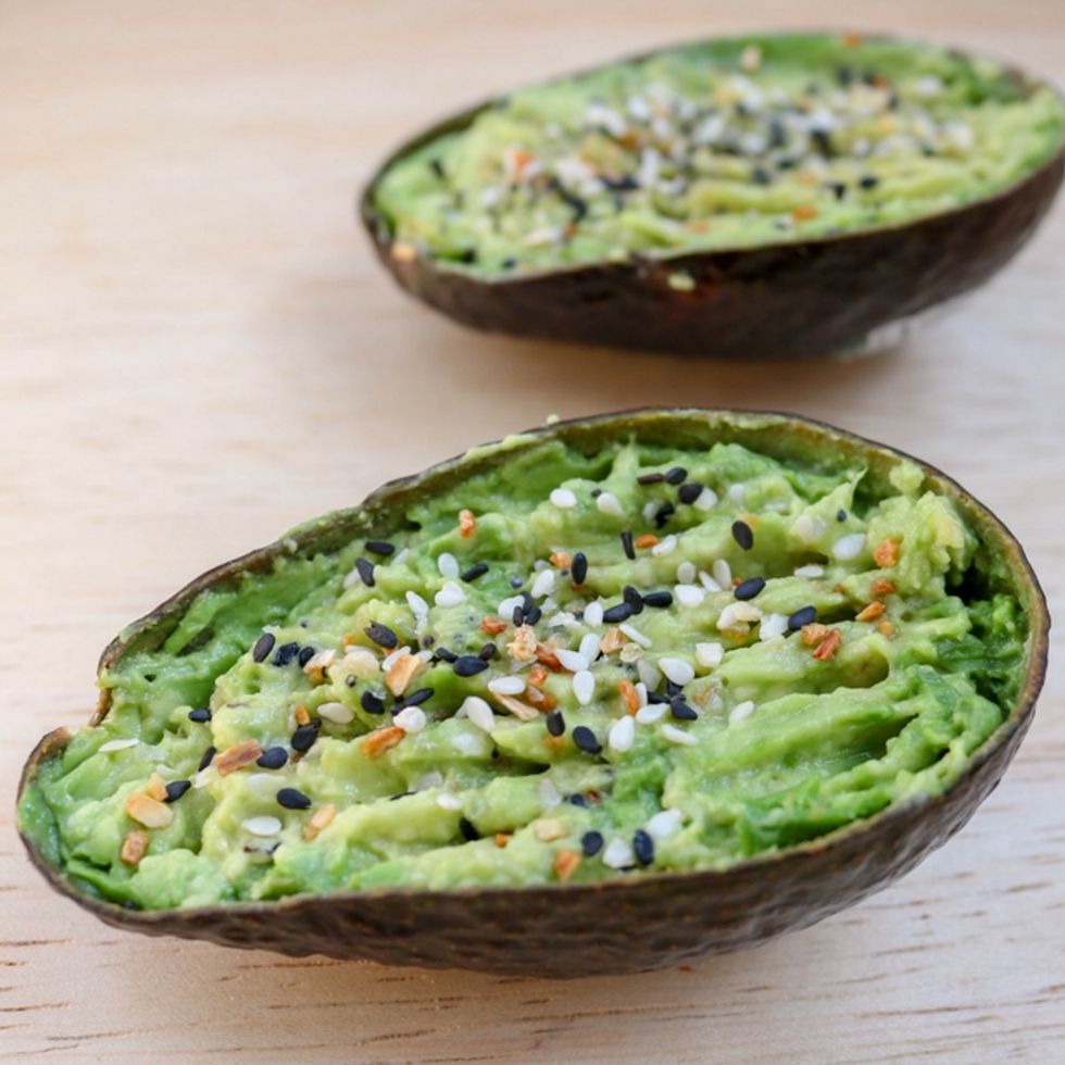 My personal fav for this is Everything But The Bagel blend from Trader Joes. Just like it sounds, it's the yummy seasoning on the outside of an everything bagel. Slice an avocado in half, sprinkle a little on, and all you need is a spoon and you're good to go. Buy the blend here and go on your merry way.