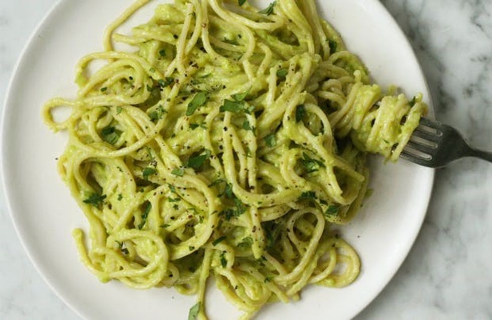 This one lets you play around with a classic alfredo for something a little lighter. Mash some avocado with lemon juice, garlic, and basil, and you have a savory sauce that's packed full of nutrients.