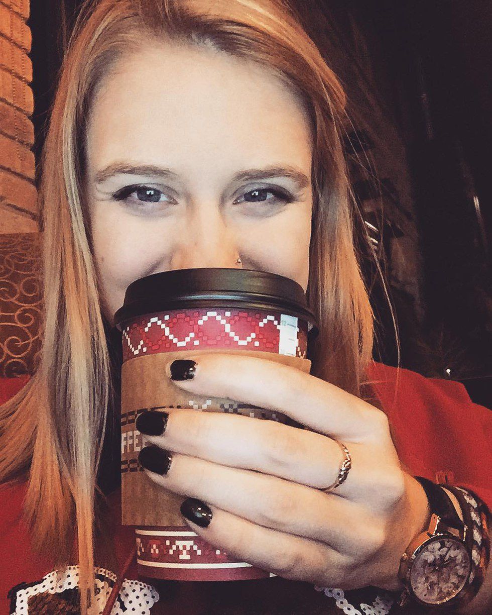 (This is me enjoying a delicious peppermint mocha from Dunn Bros.)