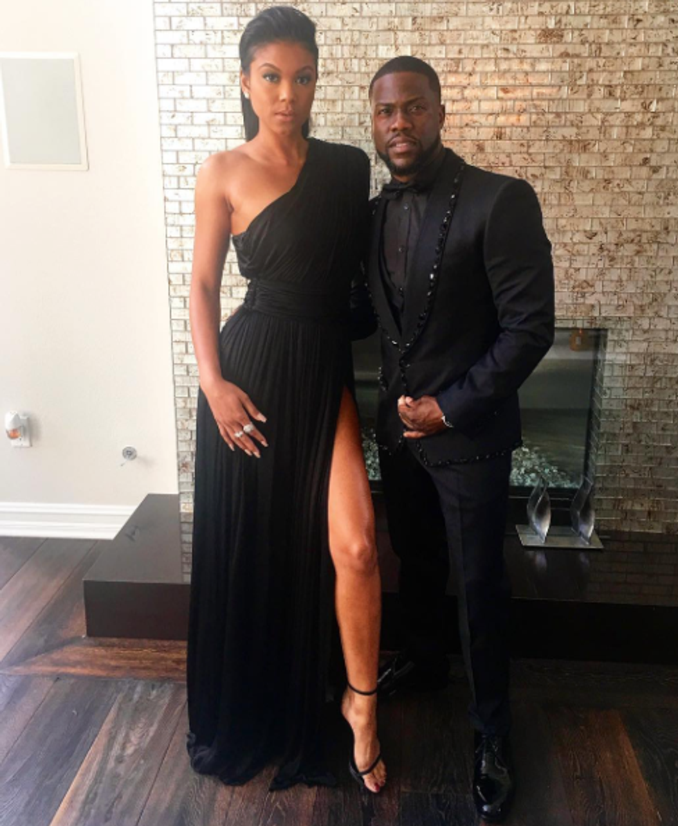 Kevin Hart and his fiancée Eniko Parrish show off their Oscars attire in this picture from Kevin Hart's Instagram account, where he and his fiance look perfect.