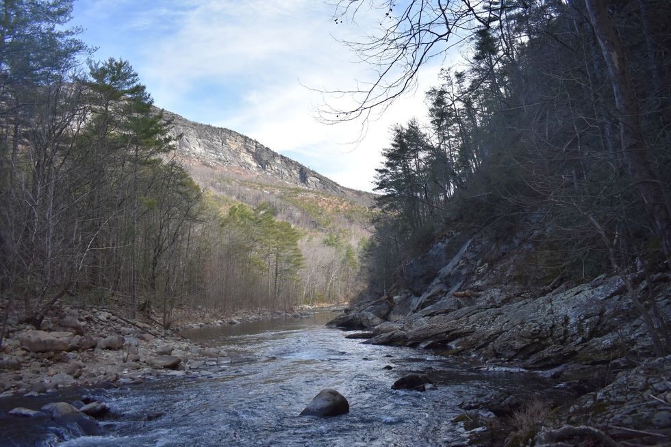 The Linville Gorge is a special, special place. There are numerous options for day hikes, some of which take you down to the roaring Linville River, others which take you to some incredible geological formations, and some that hike you right up the side of massive mountains, allowing you to see for miles upon miles. Linville Falls seems to be the most popular tourist destination in the Gorge, but there are endless opportunities for adventure outside of just the most popular spots. Some of my favorite sections of trail within the gorge are the Chimneys, which is this half mile long portion of the Mountains to Sea trail which literally cuts right through some of the wildest rock formations I've ever seen. Another really interesting trail which contrasts the higher elevation environment of the chimneys is the Linville Gorge Trail, which follows the river on the western side of the gorge, opposite the Chimneys, Shortoff Mountain, and Tablerock Mountain, a few of the wilderness' most noteworthy landmarks. Despite being a relatively rough trail (carrying a GPS and/or compass and map is advised), it offers some of the humbling views in the eastern US. Looking up at the massive cliffs lining the opposite side of the gorge sure does make you feel small.