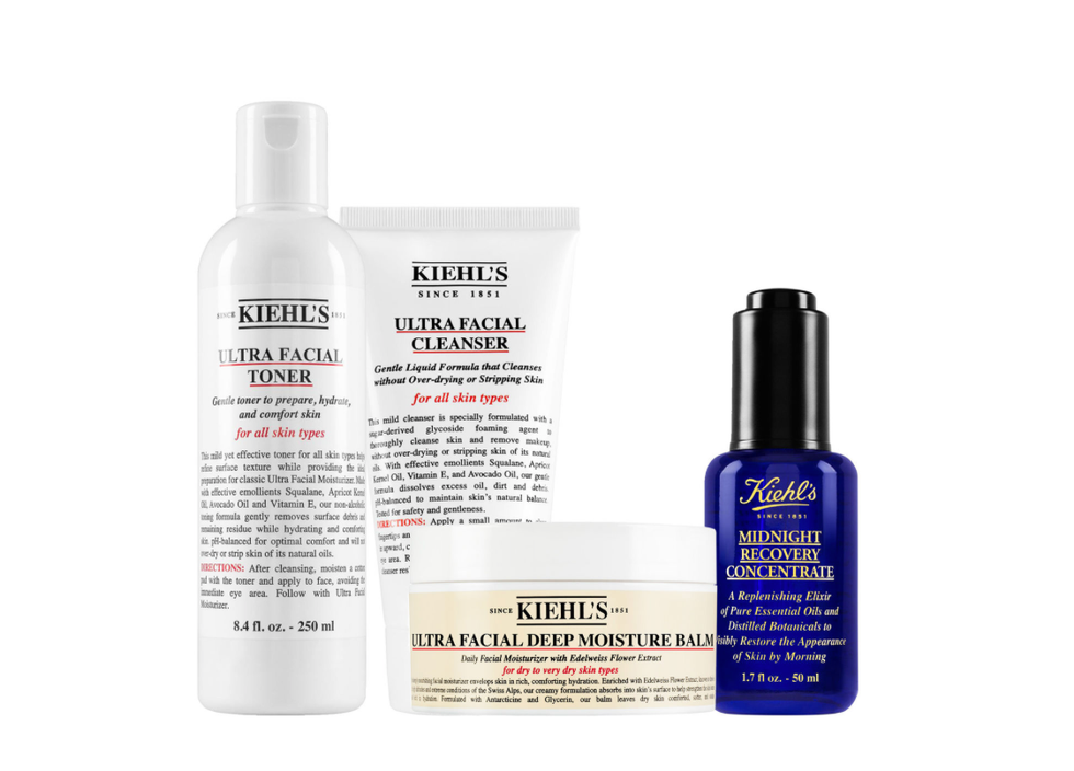 Although Kiehl's is much more expensive, the results are outstanding. They offer a Ultra Hydrating Routine products for dry skin that include a facial toner, facial cleanser, deep moisture balm, and lastly, a "midnight recovery concentrate."