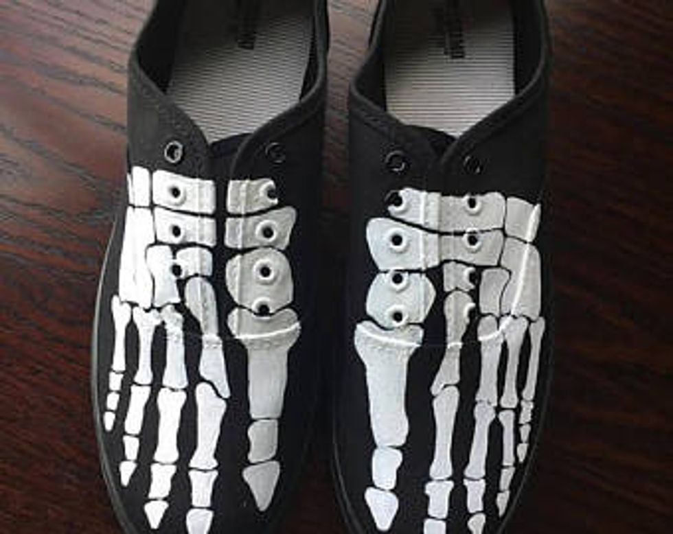- For skeleton shoes, all you need is a pair of plain black comfortable sneakers and a white fabric paint.