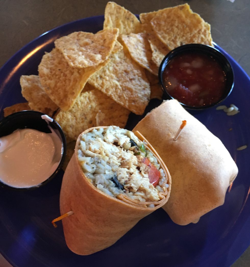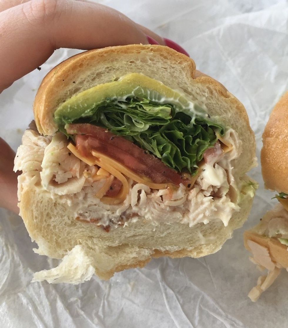 A cute little place with outdoor seating, this sandwich shop is a go-to for lunch since they're only open from 11:30-2 every day. It gets crowded and hectic inside but it's definitely worth the wait. Pictured is the "Twisted Sister" which is a sub-style sandwich with turkey, cheddar cheese, bacon, avocado, mixed greens, tomato, and mayo. It comes with chips but you can add a freshly baked cookie and/or drink if you want for an additional cost.