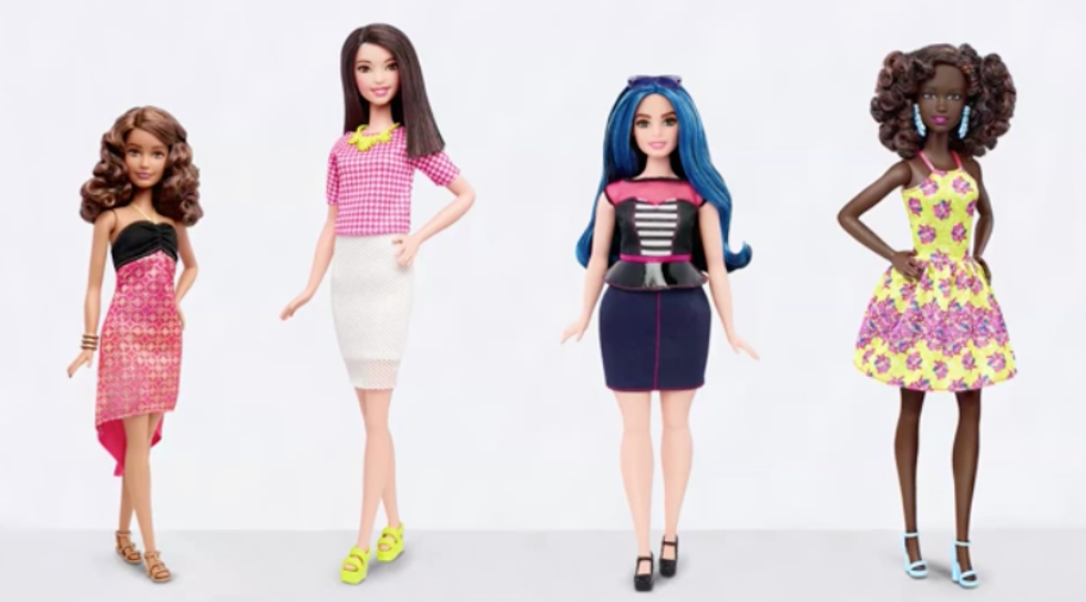 Mattel has recently released a new line of Barbies and it features "4 body types, 7 skin tones, 22 eye colors, [and] 24 hairstyles." It is important to note that each doll is named Barbie, no matter the size, shape, or color. Some people are apt to call this new line unnecessary, but I believe that since these dolls serve as companions for young girls ages three and up, it is about time Barbie got an upgrade to realism.